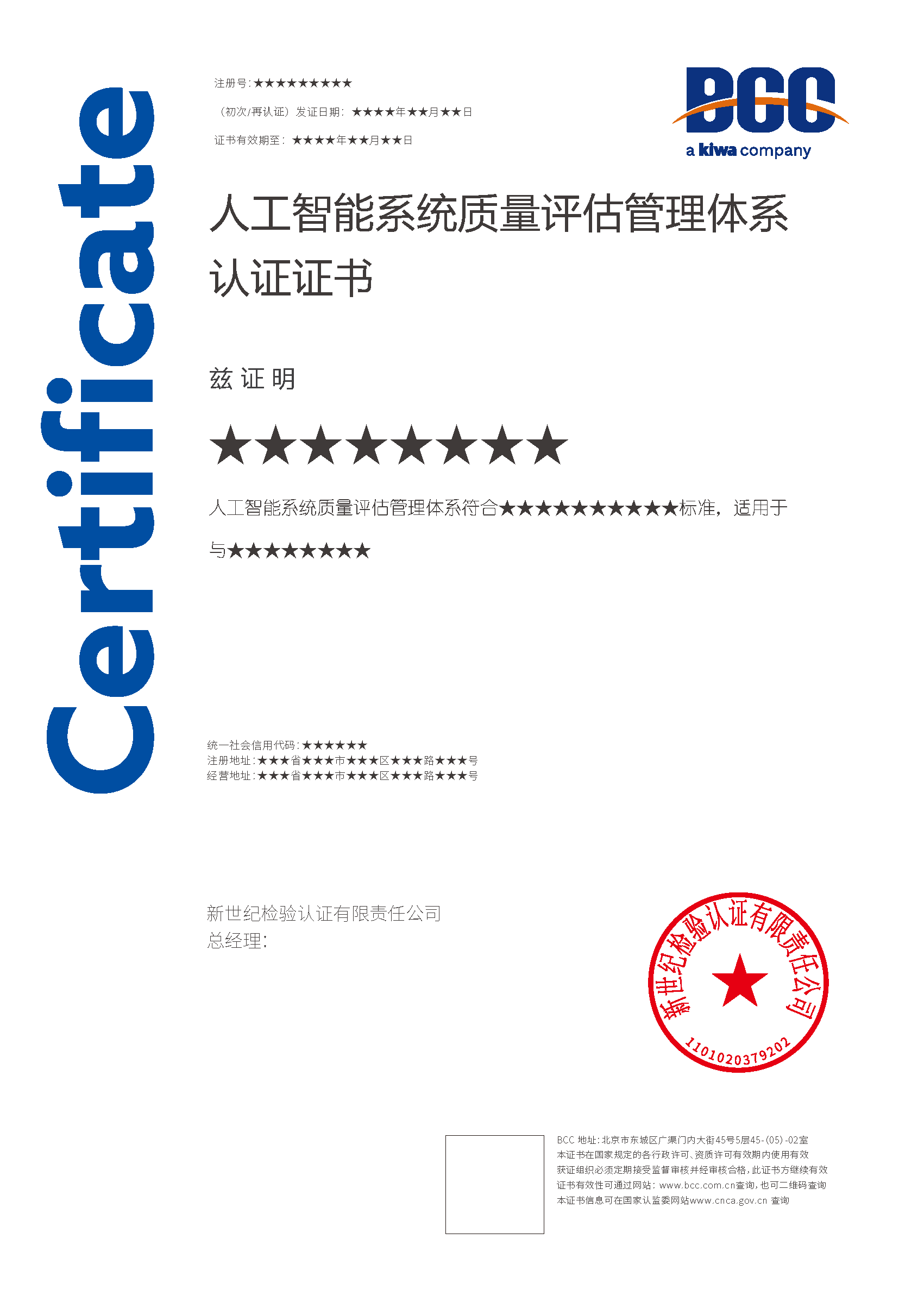 本頁(yè)涉及的認(rèn)證服務(wù)中均有對(duì)應(yīng)的《認(rèn)證實(shí)施規(guī)則》,BCC擁有其最終解釋權(quán)。任何組織及個(gè)人未經(jīng)BCC許可,不得以任何形式全部或部分使用(法律要求除外)認(rèn)證相關(guān)信息。如需獲取相關(guān)實(shí)施規(guī)則請(qǐng)用以下方式聯(lián)系獲取:電話:010-58579316 郵箱:fwjs@kiwa.cn