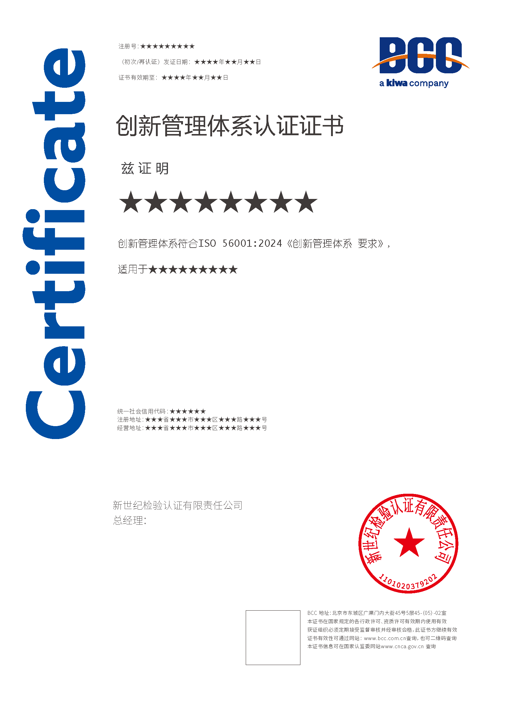 本頁涉及的認證服務中均有對應的《認證實施規(guī)則》,BCC擁有其最終解釋權。任何組織及個人未經(jīng)BCC許可,不得以任何形式全部或部分使用(法律要求除外)認證相關信息。如需獲取相關實施規(guī)則請用以下方式聯(lián)系獲取:電話:010-58579316 郵箱:fwjs@kiwa.cn