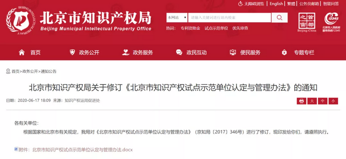以上摘自《北京市知識產(chǎn)權(quán)試點示范單位認定與管理辦法》。
