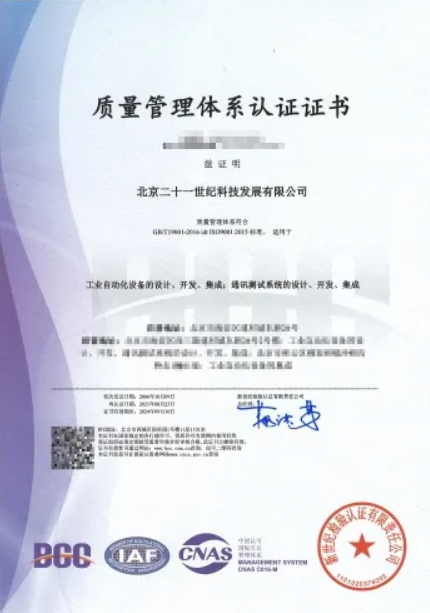審核組通過現(xiàn)場(chǎng)審核一致認(rèn)定,北京二十一世紀(jì)的運(yùn)行過程、支持過程(包括資源、能力、成文信息)、管理過程(領(lǐng)導(dǎo)作用、策劃、目標(biāo)、績(jī)效評(píng)價(jià)、改進(jìn))的控制情況均符合要求,提供的記錄能夠證實(shí)管理體系滿足適用要求和實(shí)現(xiàn)預(yù)期。